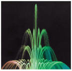 Description: Immerging, straight and narrow, air-mixed water streams that make an extended-top which seems like an opening flower and then falls back down on the water surface.