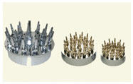 Description: Fountain jet bears multiple rows of upright looking nozzles and has a bronze chrome plated construction. It is produced in 3'', 4'' and 5'' size. As the PTE-jet, this one too produces an explosive pine tree effect but looking more dense and making a more noisy sound. This water effect looks impressive from a distance and breathtaking when it is illuminated at night.