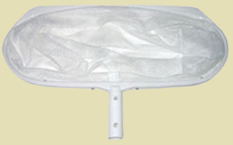 Leaf skimmer with polyester net put into a polypropylene frame. the wide rim and the extra deep net easily capture the leaves and debris from the bottom of the pool. White frame, white net.