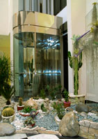 UFTAS panoramic cabins - internal or external - add value to the building, highlighting the uniqueness of its style and design. Ride between floors becomes an exceptional experience and comfort . Due to the flexible design and manufacturing process implemented by UFTAS, panoramic cabins can meet all requirements and architectural challenges .Through a large variety of designs and interior materials , panoramic cabins may turn into an excellent choice for hotels , shopping centres, office buildings, and other public places .UFTAS creates panoramic class, outside or inside your building .