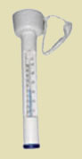 Floating thermometer with dual degree range scales (°F & °C) providing a continuous accurate measurement of the pool's or spa's temperature. the thermometer scales are sealed in a tube made of ABS with a transparent protection-sight and tied at the top there is a 100cm-long polyethylene cord.